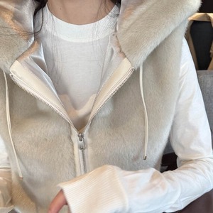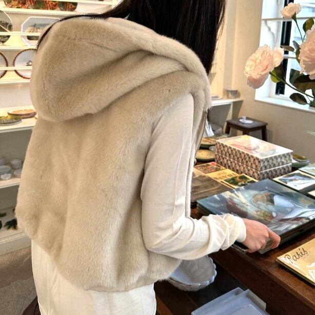 ふんわり柔らかなエコファー素材が魅力のフーディーベスト。
