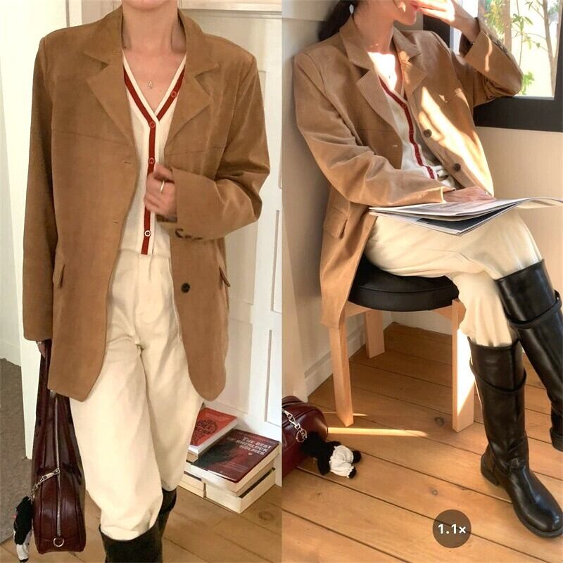 【送料無料】スウェード調オーバーサイズジャケット ブラウン テーラード アウター シングルボタン ヒップ丈 体型カバー ゆったり ショート丈 高見え 上品カジュアル 秋冬 レディース 大人可愛い 通勤コーデ 30代 40代 50代 きれいめファッション トレンド アウター YS0938