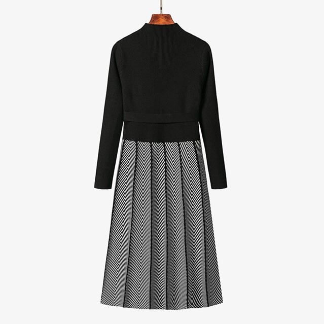 【送料無料】 ワンピース ストライプ ニットワンピ プリーツ リボン 長袖 韓国 レディース ニット ハイウエスト 膝丈 Aラインスカート かわいい 可愛い 大人可愛い 大人女子 きれいめ シンプル カジュアル 大人 上品 お洒落 こなれ感 エレガント フェミニン M L XL 2XL ブラック 秋冬 入学式 入園式 卒業式 卒園式 オルチャン 楽ちん 高級感 高見え 着痩せ 着やせ ママ 10代 20代 休日 女子会 デート 普段使い 使いやすい 動きやすい 美脚 スタイルアップ お得
