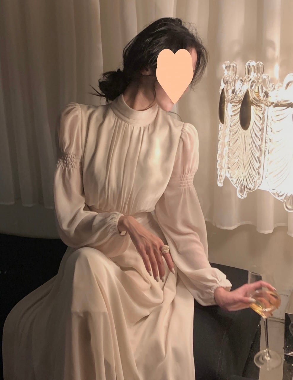 【送料無料】 ワンピース ドレス ハイネック セミロング丈 透け感 長袖 韓国 レディース かわいい 可愛い キュート 大人可愛い 大人女子 きれいめ 気品 シンプル カジュアル 大人 上品 おしゃれ お洒落 こなれ感 きちんと 大人女子 クール エレガント フェミニン S M L XL オフホワイト 春 夏 オルチャン 楽ちん 10代 20代 30代 パーティー お呼ばれ 女子会 デート 旅行 お泊まり 普段使い コーデ トレンド スタイルアップ スタイル 美脚 脚長 安い