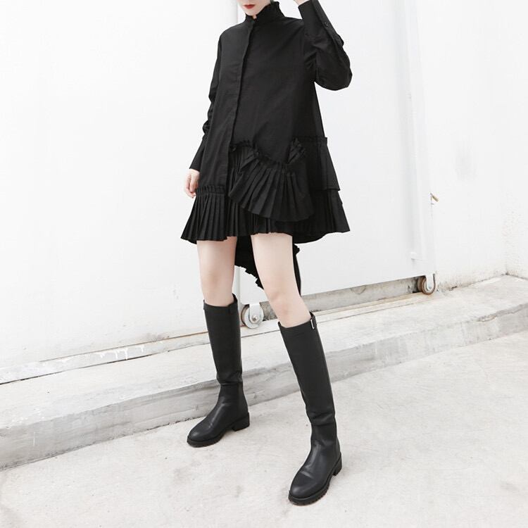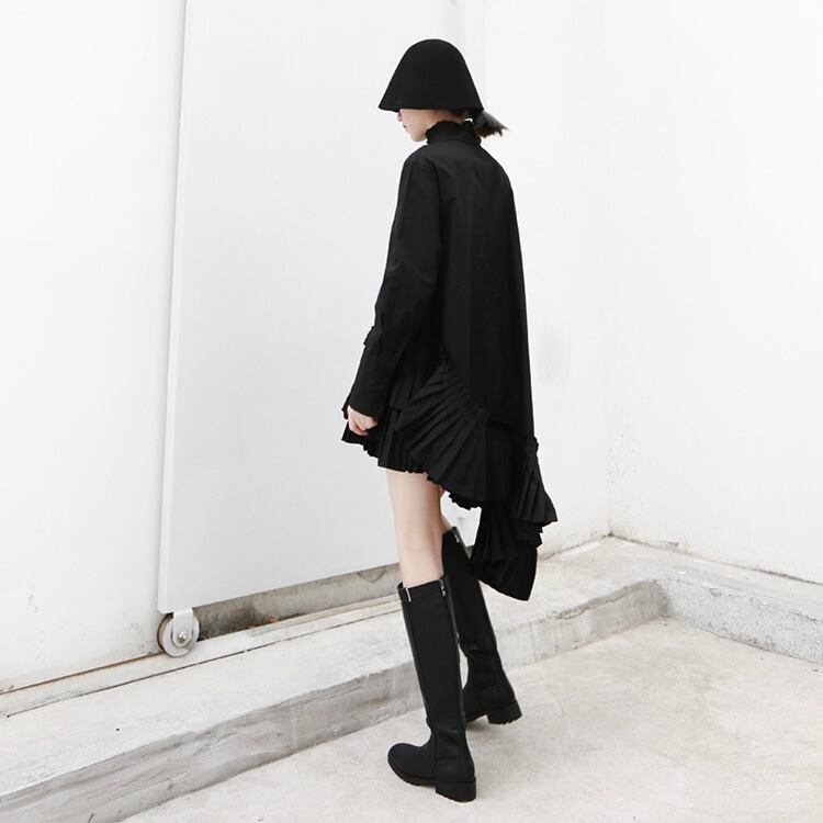 【送料無料】 ワンピース シャツワンピース ロングトップス プリーツ アシンメトリー フリル 長袖 スリム 細身 韓国 レディース かわいい 可愛い キュート 大人可愛い 大人女子 個性的 きれいめ シンプル カジュアル 大人 気品 上品 おしゃれ お洒落 こなれ感 きちんと 大人女子 クール エレガント フェミニン ワンサイズ ホワイト ブラック 春 オルチャン 楽ちん 10代 20代 女子会 デート 旅行 お泊まり 普段使い コーデ トレンド スタイルアップ スタイル