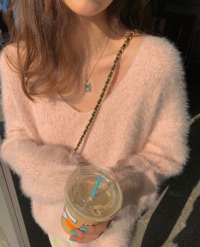 Vネックで女性らしい印象を演出し、オルチャンスタイルにもぴったり。