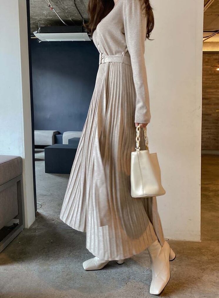 【送料無料】 ワンピース ロングワンピース ロング丈 プリーツ Vネック Aラインスカート 長袖 スリム 細身 韓国 レディース かわいい 可愛い キュート 大人可愛い 大人女子 シンプル きれいめ カジュアル 大人 気品 上品 おしゃれ お洒落 こなれ感 きちんと 大人女子 クール エレガント フェミニン S M L XL カーキ ブラック 春 オルチャン 20代 30代 40代 お呼ばれ 女子会 デート お泊まり 旅行 普段使い デイリー コーデ トレンド 脚長 美脚 スタイル