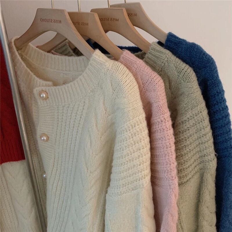 【送料無料】 カーディガン ニット ケーブル編み ゴールドパールボタン 韓国 レディース 長袖 ラウンドネック かわいい 大人可愛い シンプル カジュアル おしゃれ こなれ感 ラブリー キュート アメカジ ベーシック オトナ女子 大人女子 無地 秋 冬 40代 50代 休日 アウトドア 旅行 ショッピング カフェ 着回し 普段使い 重ね着 暖かい 防寒 体型カバー トレンド 流行 インスタ映え フリーサイズ 白 ホワイト 青 ブルー 緑 グリーン 紫 パープル 黄色 イエロー