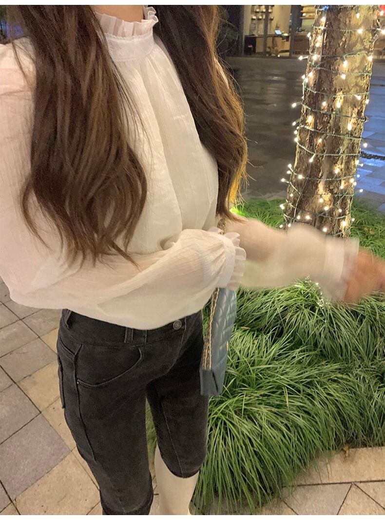 【送料無料】 シースルーブラウス 上品 透け感 パフシャーリング レースシフォン きれいめ シック 美しい 韓国 レディース 個性的 おしゃれ お洒落 フェミニン セクシー かっこいい オルチャン 長袖 高級感 高見え 大人可愛い かわいい 可愛い 大人女子 大人 こなれ感 抜け感 シンプル キュート 主役級 着痩せ 着やせ 体型カバー 20代 30代 40代 ママ 母 着回し 春 使いやすい 安い S M L XL デート 女子会 休日 二次会 謝恩会 顔合わせ 食事会