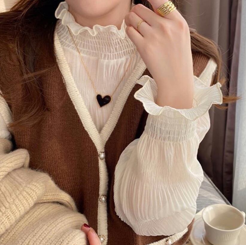 【送料無料】 ブラウス ハイネック シフォン シアー シースルー 透け感 韓国 レディース オルチャン 長袖 ボリューム袖 フリル袖 プリーツ ドレープ 薄手 かわいい 大人可愛い きれいめ シンプル おしゃれ レトロ こなれ感 ラブリー キュート エレガント モダン 存在感 抜け感 フェミニン オトナ女子 大人女子 高見え 無地 春 秋 冠婚葬祭 ママ 休日 デート 着回し 普段使い モテ トレンド 流行 インスタ映え S M L XL 白 ホワイト 黒 ブラック アプリコット