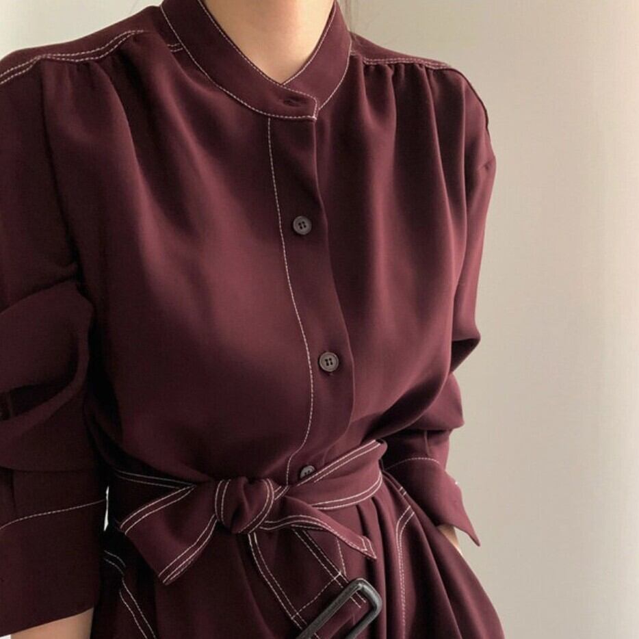Aラインのシンプルながらも、ハイウエストとスタンドアップカラーが特徴的で、大人の魅力を引き立てくれるワンピース。ルーズなシルエットとロングスカートで、女性らしさと上品さを同時に演出します。春や秋のオフィスやカジュアルなシーンにぴったりで、20代から40代の幅広い年齢層におすすめのアイテムです。さらに、美しいシルエットを作り出すような着痩せ効果もあり、高級感も感じられる素材を使用しています。ママやOLの方にも大変人気で、忙しい毎日の中でさりげなく高見えスタイルを楽しめます。