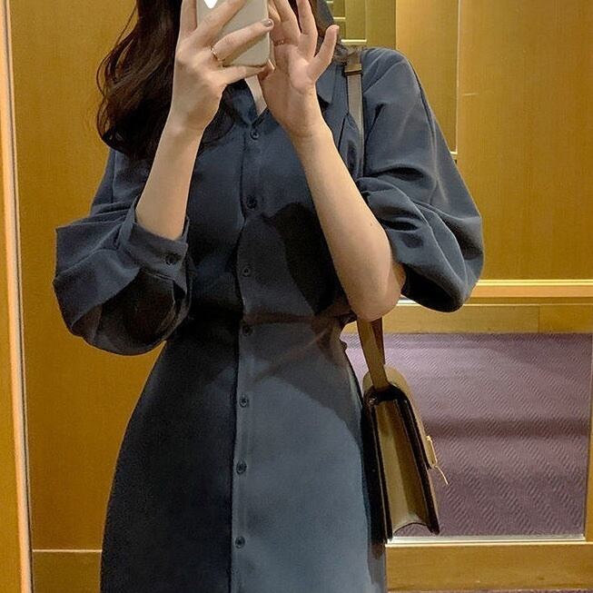 【送料無料】 シャツワンピース フロントボタン ランタンスリーブ ロング丈 韓国 レディース オルチャン 長袖 襟付き Iライン ウエストマーク バックリボン 薄手 大人可愛い きれいめ シンプル カジュアル 上品 おしゃれ レトロ こなれ感 抜け感 フェミニン アクティブ ベーシック ナチュラル オトナ女子 大人女子 無地 春 秋 40代 50代 休日 ショッピング カフェ デート 着回し 普段使い 脚長 トレンド 流行 インスタ映え S L XL 黒 ブラック モノトーン