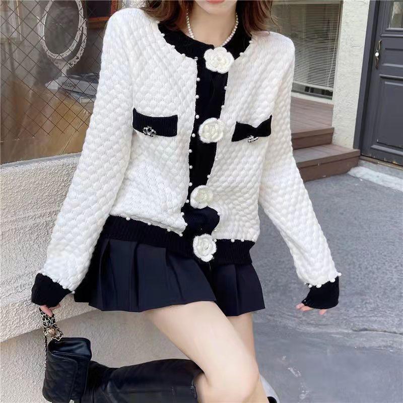 【送料無料】 ニット カーディガン フラワーボタン パール クラシカル 韓国 レディース オルチャン 長袖 Uネック ラウンドネック フレア ふわふわ かわいい 大人可愛い きれいめ 上品 おしゃれ レトロ ラブリー キュート エレガント モダン 存在感 抜け感 フェミニン オトナ女子 大人女子 秋 冬 入学式 入園式 卒業式 卒園式 ママ 休日 イベント デート 食事会 着回し トレンド 流行 インスタ映え フリーサイズ ワンサイズ 白 ホワイト 黒 ブラック 赤 レッド