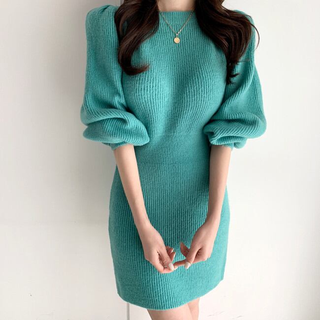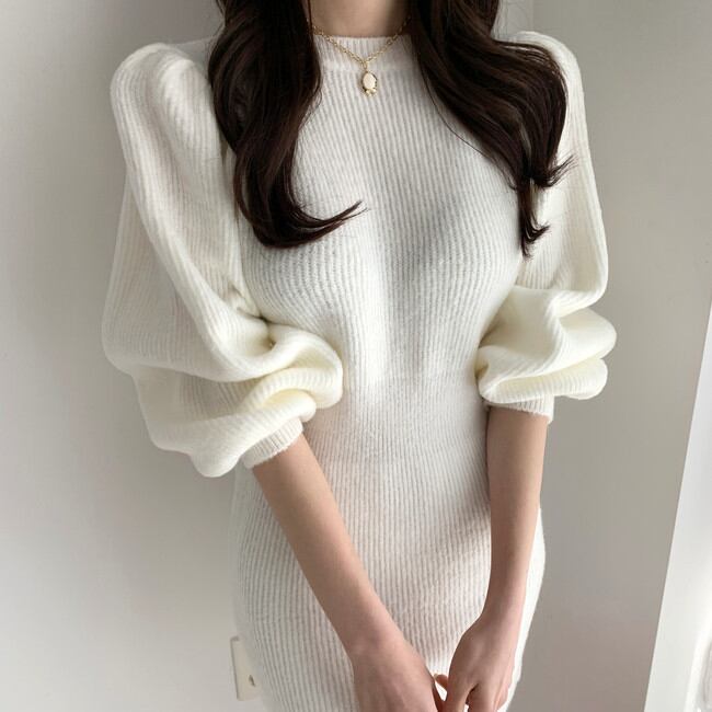 【送料無料】 ニットワンピース 上品 パフ スリーブ 膝丈 ひざ丈 膝上 袖あり 韓国 レディース オルチャン長袖 ボリューム袖 ラウンドネック スリム タイト 細身 かわいい 大人可愛い きれいめ シンプル 大人 上品 おしゃれ お洒落 大人女子 こなれ感 キュート 主役級 存在感 抜け感 無地 冬 10代 20代 30代 通学 デート 公園 女子会 お泊まり 休日 楽ちん 暖かい 防寒 モテ 美脚 脚長 定番 フリーサイズ 白 ホワイト 緑 グリーン 茶色 ブラウン カーキ