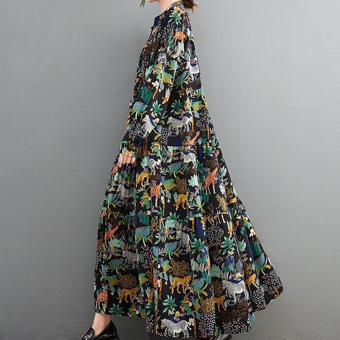 【送料無料】 アニマル柄 ワンピース ロングワンピース ボタニカル柄 個性的 主役級 存在感 長袖 ワイド 体型カバー ラフ ルーズ ゆったり ゆる 韓国 レディース ふんわり オルチャン 可愛い かわいい 大人可愛い きれいめ カジュアル 大人 おしゃれ お洒落 オトナ女子 大人女子 こなれ感 ラフ 派手 フリーサイズ 春 夏 秋 10代 20代 30代 女性用 母 通学 デート 女子会 お泊まり 休日 着回し 着痩せ 着やせ 普段使い 楽ちん 動きやすい