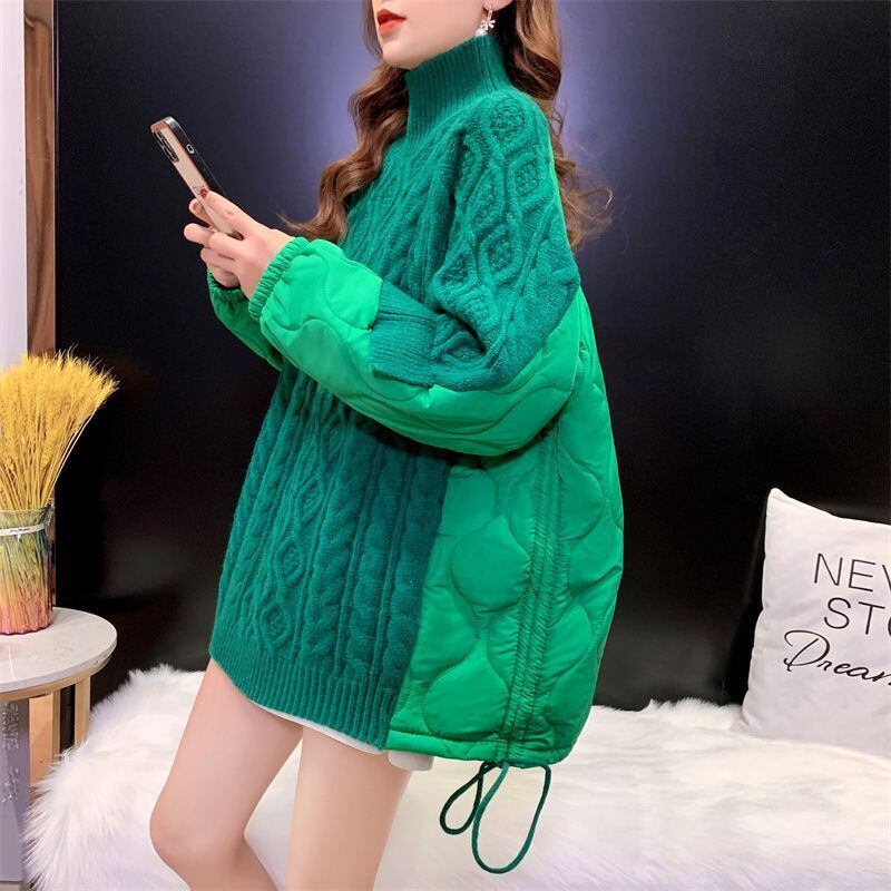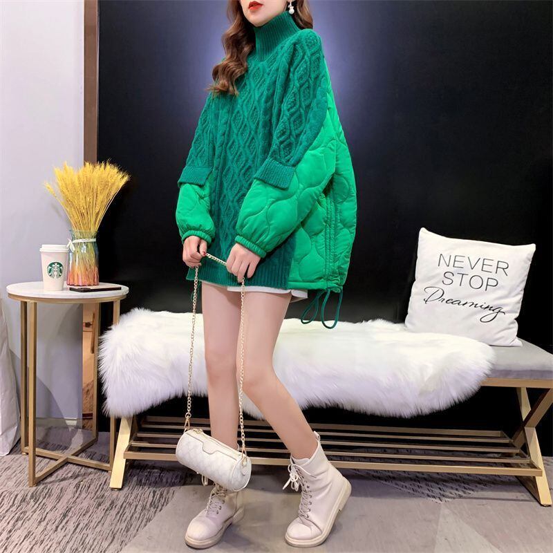 【送料無料】 ケーブルニット タートルネックセーター キルティング ケーブル編み タートルネック 韓国 レディース オルチャン 個性的 ドッキング 切り替え 異素材 長袖 サイドギャザー 大人可愛い カジュアル おしゃれ こなれ感 個性的 クール 抜け感 アクティブ オトナ女子 大人女子 無地 秋 冬 女子会 休日 着回し 普段使い 重ね着 楽ちん 暖かい 体型カバー トレンド 流行 インスタ映え S M L XL 2XL 3XL 白 ホワイト 黒 ブラック 青 ブルー 緑 グリーン