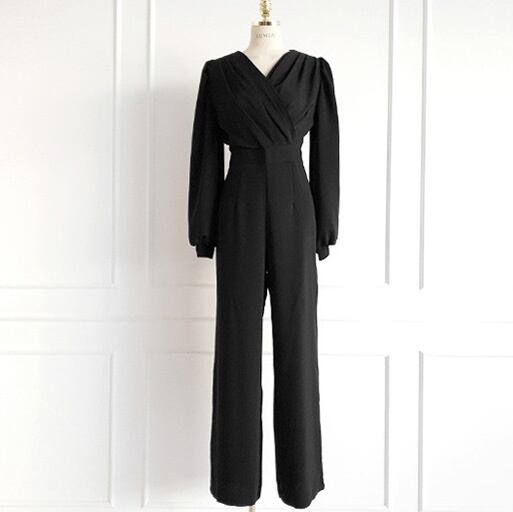 【送料無料】 ジャンプスーツ オールインワン パンツスーツ ハイウエスト 韓国 レディース オルチャン ベージュ 黒 ブラック 長袖 ボリューム袖 ぽわん袖 Vネック カシュクール ギャザー ドレープ 大人可愛い カジュアル おしゃれ こなれ感 クール エレガント モダン フォーマル 抜け感 ベーシック オトナ女子 大人女子 無地 春 秋 入学式 入園式 卒業式 卒園式 冠婚葬祭 ママ ビジネス OL 通勤 女子会 休日 デート 体型カバー トレンド 流行 インスタ映え S M L XL