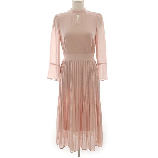 華やかなデザインのプリーツスカートが可愛らしいピンクのワンピースです。