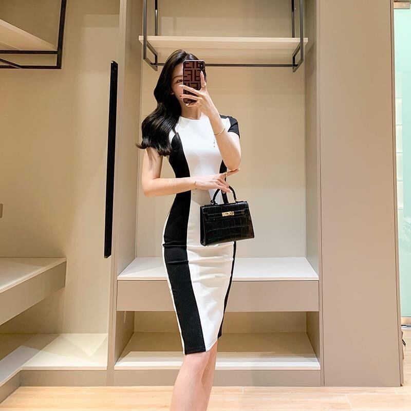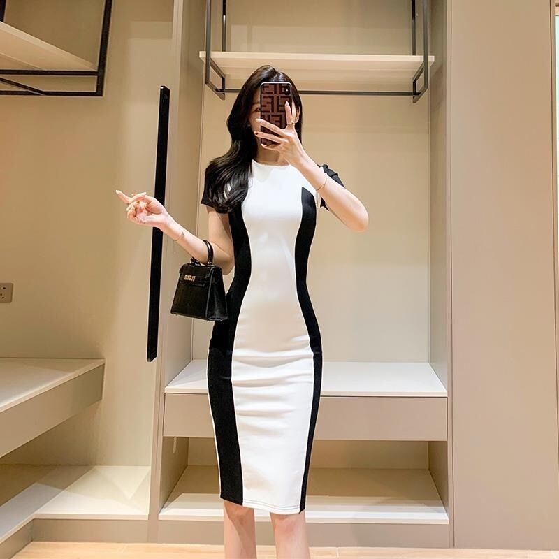 【送料無料】 パーティードレス タイトワンピース ワンピドレス バイカラー 白 黒 ハイウエスト 半袖 Iライン ラウンドネック 細身 タイト 韓国 レディース オルチャン ブラック ホワイト ストレート デート 女子会 膝丈 襟なし セクシー 春服 夏服 上品 入学式 入園式 卒業式 卒園式 10代 20代 30代 上品 おしゃれ お洒落 オトナ女子 デート 女子会 S M L XL ワンピース スカート スリム タイト 二次会 誕生日 同窓会 エレガント ヒップライン スタイルアップ シンプル