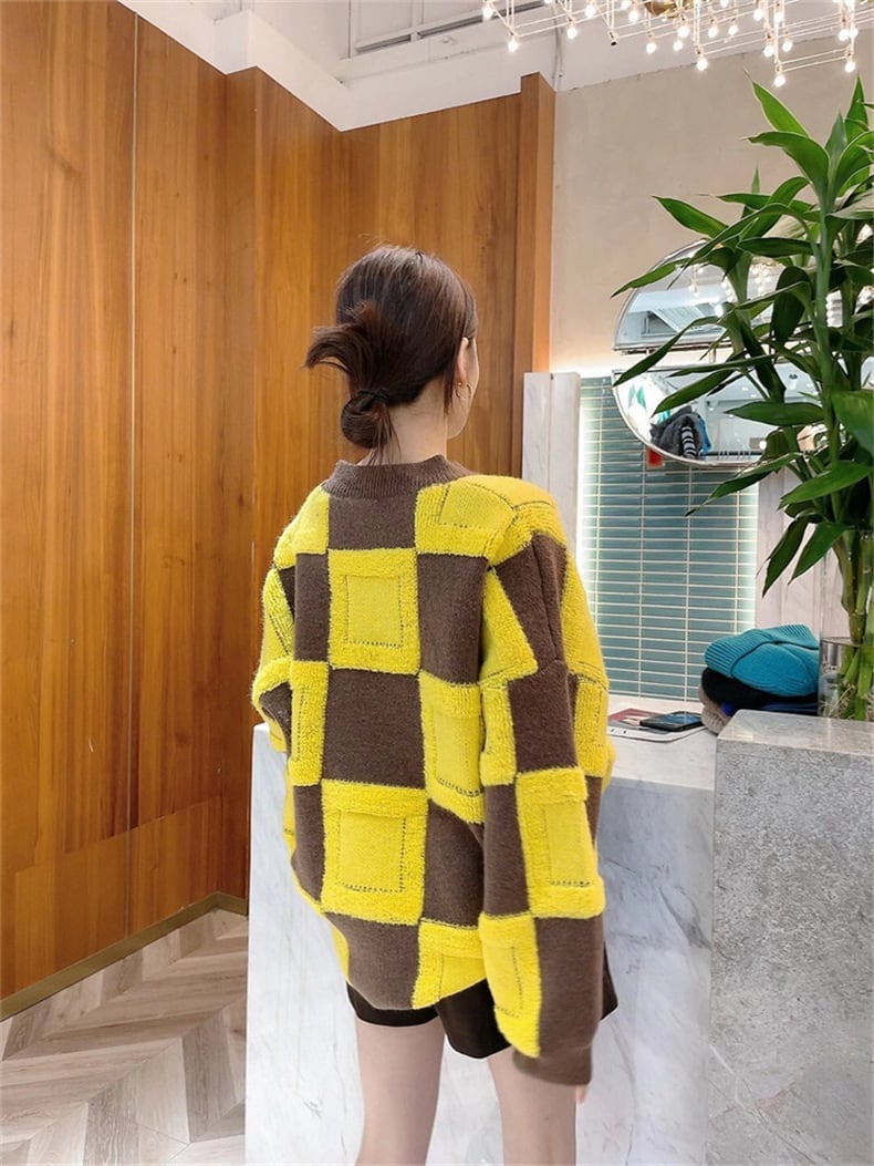 【送料無料】 セーター ニットセーター ニット ラウンドネック 長袖 プルオーバー ルーズ 市松模様 韓国 レディース かわいい 可愛い キュート 大人可愛い 大人女子 シンプル きれいめ カジュアル 大人 気品 上品 おしゃれ お洒落 こなれ感 きちんと 大人女子 クール エレガント フェミニン ワンサイズ イエロー ブルー ブラック 秋 冬 オルチャン 10代 20代 30代 40代 デート ショッピング お泊まり 旅行 休日 普段使い デイリー コーデ トレンド スタイルアップ