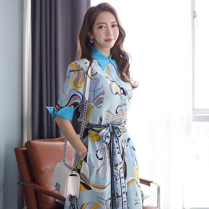 【送料無料】 ワンピース レトロ スカーフ柄 イレギュラー オルチャン レディース 韓国 リボン ミモレ丈 不規則丈 5分袖 襟付き かわいい 大人可愛い きれいめ 大人 上品 おしゃれ かっこいい 大人女子 こなれ感 個性的 クール モード系 セクシー エレガント モダン 主役級 存在感 抜け感 女性用 OL デート 女子会 お泊まり 休日 パーティー イベント リゾート 旅行 ガーデン レストラン ショッピング コーデ スタイル モテ 美脚 脚長 サイズ S M L XL