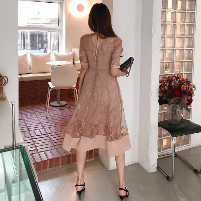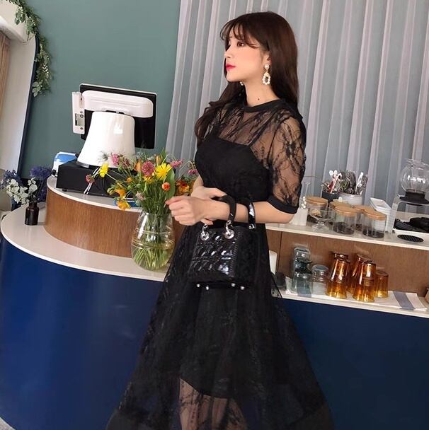 【送料無料】 レースワンピース シースルーワンピース 大人 ドレス 黒 シースルー 透け感 韓国 レディース オルチャン 黒 ブラック ピンク