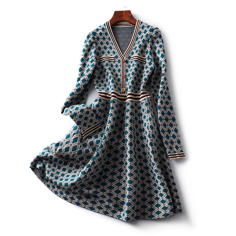 【送料無料】 ニットワンピース ドレス 幾何学模様 おしゃれ柄 ウエストマーク 膝丈 ワンピース Vネック 韓国 レディース オルチャン カジュアル 30代 40代 女性用 着回し コーデ オトナ女子 かっこいい 大人可愛い 存在感 こなれ感 体系カバー 普段使い デート 可愛い かわいい 休日 イベント インスタ映え 主役級 個性的 着やせ 高級感 高見え 抜け感 スタイルアップ エレガント 大人女子 通勤 OL ビジネス オフィス 入学式 入園式 卒業式 卒園式