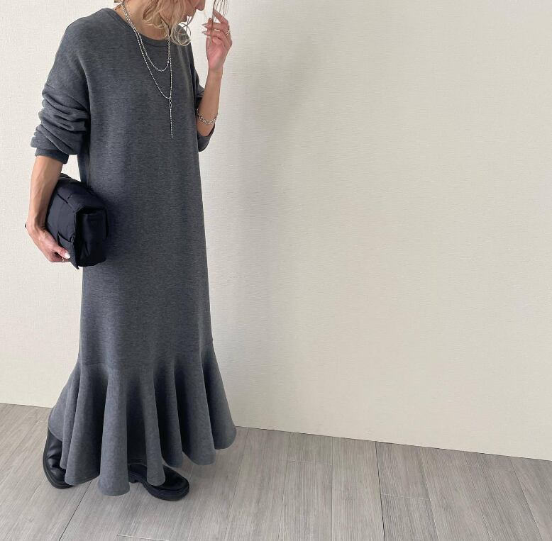 【送料無料】 ロングワンピース スウェットワンピース マーメイド おしゃれ 美ライン 黒 グレー韓国 レディース オルチャン ロング丈 フレアスカート アンクル丈 袖あり 長袖 クルーネック 襟なし 大人カジュアル 無地 ゆる 楽ちん ゆったり 体型カバー 秋服 冬服 可愛い かわいい おしゃれ シンプル お洒落 ぽっちゃり ラフ 通学 20代 30代 普段使い ロングスカート フレア マーメイドスカート 着痩せ スウェット ブラック 通勤 ラフ ママ 公園 女性らしい 大人女子 オトナ女子