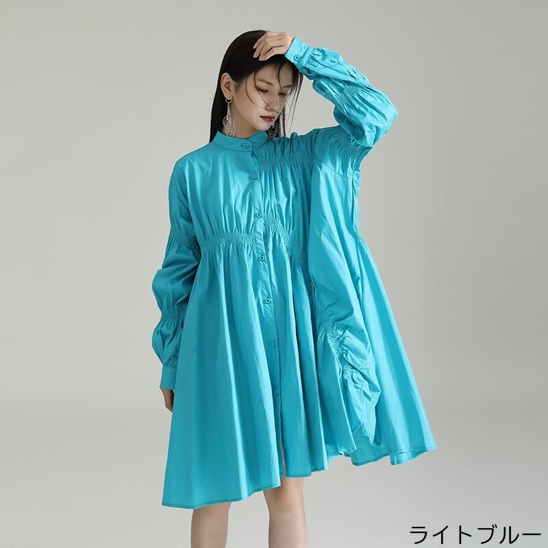 【送料無料】 ロングシャツ 白 黒 シャーリング フロントボタン ボリューム 個性的 レディース オルチャン 韓国 シャツワンピース 膝丈 レギュラー丈 袖あり 長袖 ボリューム袖 フレア ワイド Aライン かわいい 大人可愛い シンプル カジュアル 大人 おしゃれ かっこいい 大人女子 こなれ感 ラフ ルーズ クール 抜け感 無地 女性用 ママ OL デート 女子会 お泊まり 休日 アウトドア イベント リゾート 旅行 ショッピング 着回し 普段使い コーデ スタイル 楽ちん 体系カバー