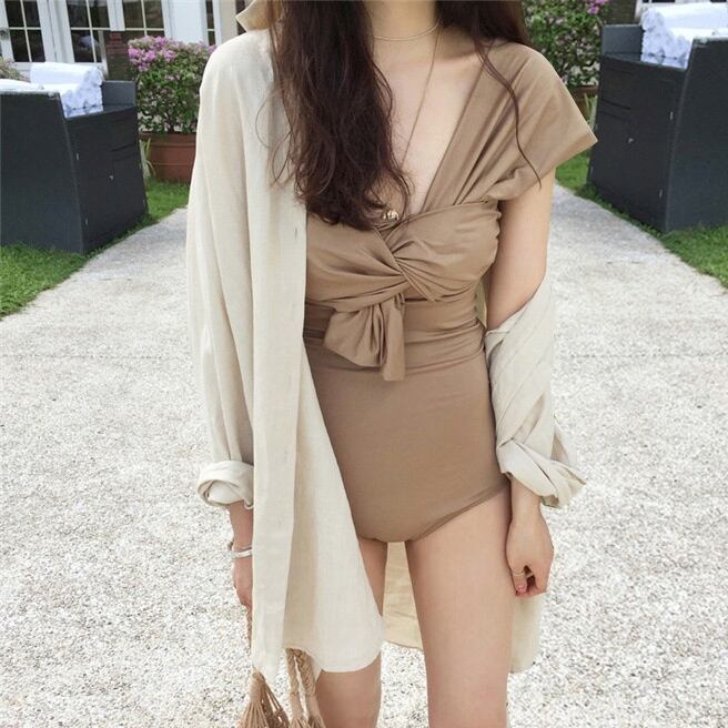 ワンショルダーにカシュクールがおしゃれなワンピース水着。