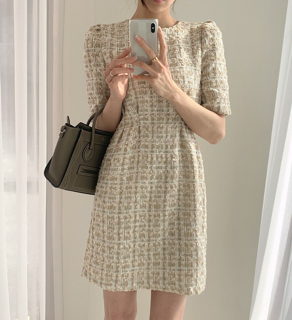 【送料無料】 ワンピース ミニ ツイード チェック オルチャン レディース 韓国 レトロ ブラック 黒 ベージュ ショート丈 膝上 袖あり 5分袖 ラウンドネック スリム タイト 細身 Aライン かわいい 大人可愛い きれいめ 大人 上品 おしゃれ 大人女子 こなれ感 ラブリー キュート 個性的 セクシー エレガント モダン 主役級 存在感 フォーマル オールシーズン 入学式 入園式 卒業式 卒園式 謝恩会 二次会 冠婚葬祭 母の日 女性用 ママ OL デート 女子会