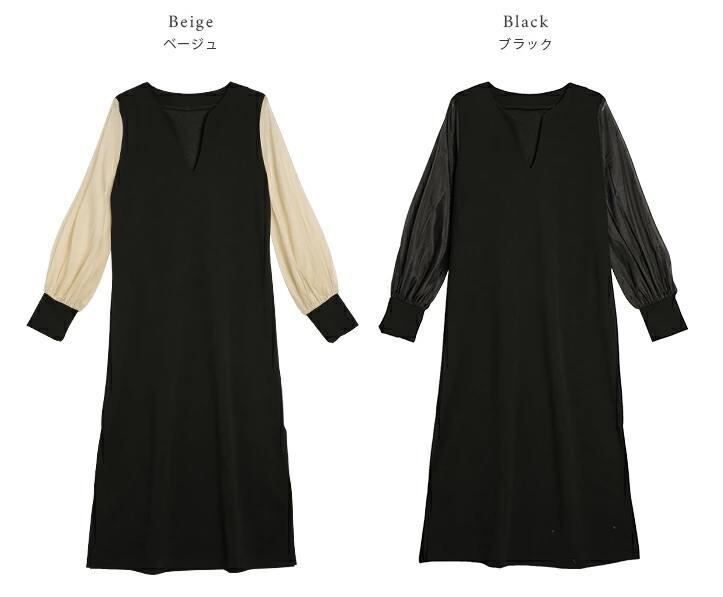 【送料無料】 ワンピース バイカラー 異素材切り替え ロングワンピース ベージュ ブラック 韓国 レディース オルチャン 膝下 ミモレ ミモレ丈 袖あり 長袖 ボリューム袖 かわいい 大人可愛い きれいめ シンプル 大人 上品 おしゃれ お洒落 大人可愛い 大人女子 こなれ感 キュート 主役級 存在感 抜け感 無地 春 秋 入学式 入園式 卒業式 卒園式 謝恩会 結婚式 二次会 10代 20代 30代 40代 オフィス ビジネス OL 通勤 通学 デート 女子会 お泊まり 休日 M L XL