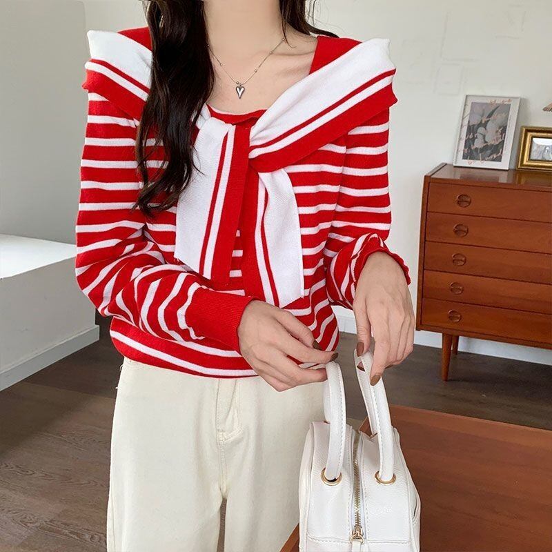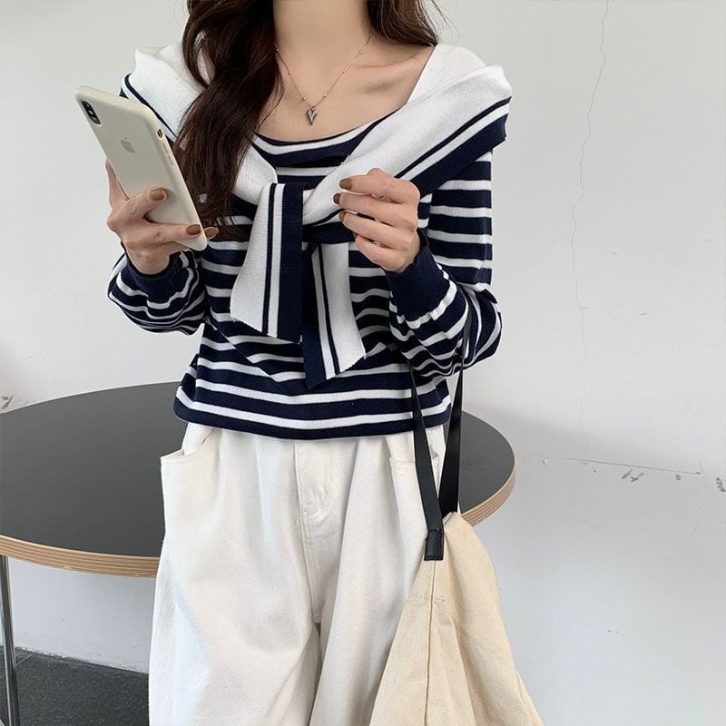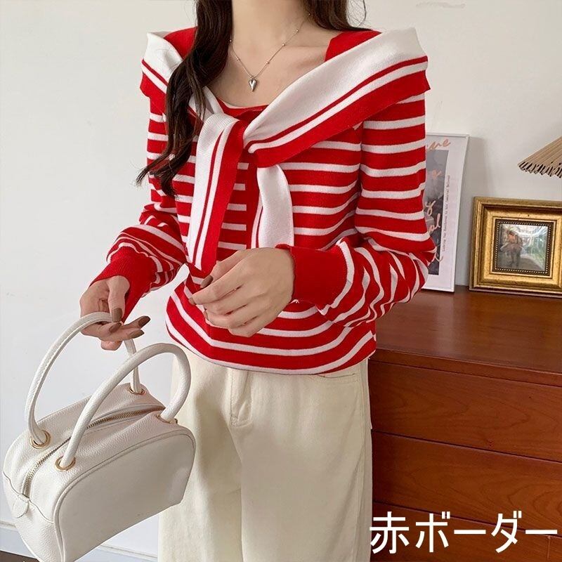 【送料無料】 ニット マリンボーダー 長袖 スクエアネック ボーダー 韓国 レディース オルチャン ケープカラー マリンボーダーカットソー 襟なし スリム 細身 女子会 可愛い 大人可愛い きれいめ スカーフ 大人 上品 オトナ女子 白 黒 ブルー ブラック ホワイト フリーサイズ 10代 20代 30代 デート 旅行 着回し 二の腕カバー スタイルアップ モテ プレゼント おしゃれ襟 かわいい ゆったり お洒落 こなれ感 ラフ スポーティー 抜け感 ママ サマーニット