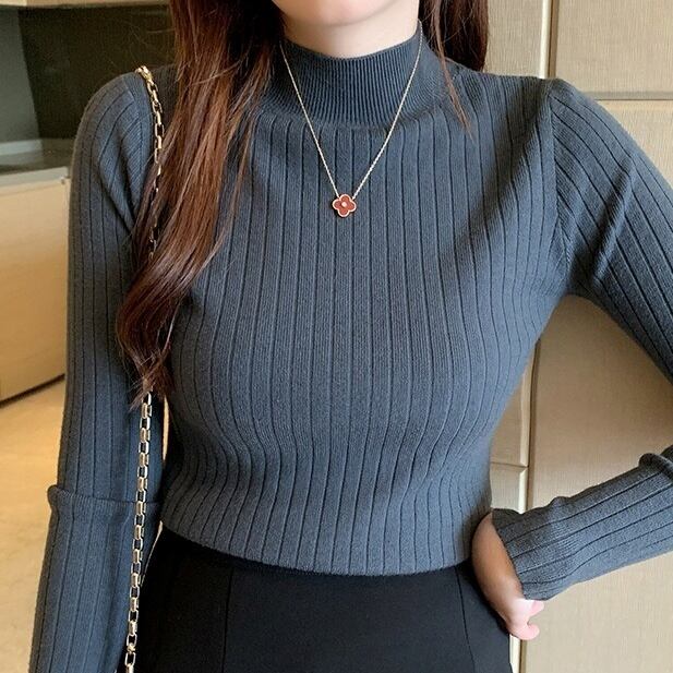 【送料無料】 ニット 長袖 リブニット ハーフネック 白 黒 韓国 レディース オルチャン スリム 大人カジュアル タイト 細身 セクシー 無地 女子会 可愛い 大人可愛い きれいめ 大人 上品 オトナ女子 グレー アプリコット 茶色 ローズレッド ピンク ブラック ホワイト 秋冬 秋 冬 フリーサイズ 二次会 大人カラー 同窓会 食事会 10代 20代 30代 デート タートルネック セーター 旅行 着回し 着痩せ 二の腕カバー スタイルアップ あったか モテ プレゼント