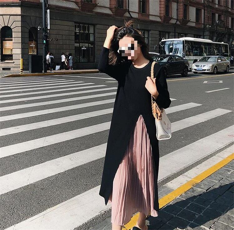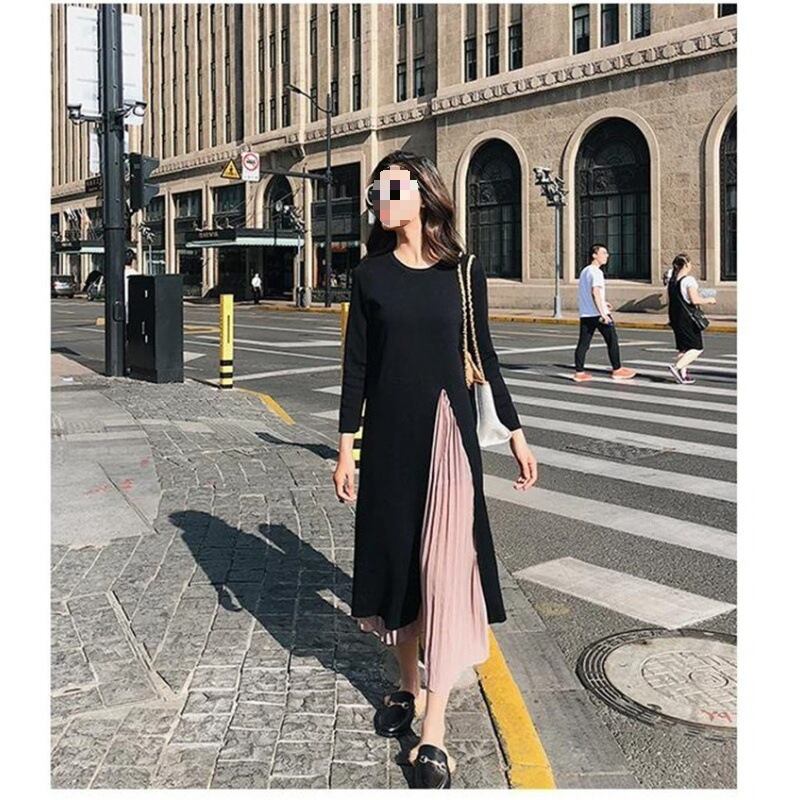 【送料無料】 プリーツワンピース 大きいサイズ ニットワンピース プリーツ 切り替え 異素材ミックス 韓国 レディース オルチャン ロングスカート ミモレ丈 ミモレ プリーツスカート シフォン 長袖 マキシ ロング丈 女子会 無地ドレス ワンピース パーティー 黒 可愛い 清楚 お嬢様系 細身 かわいい きれいめ シンプル 大人 上品 オトナ女子 エレガント カジュアル 体型カバー 二の腕カバー 脚長 普段使い 30代 40代 デート 通勤 インスタ映え 楽ちん スタイルアップ 高見え 着痩せ