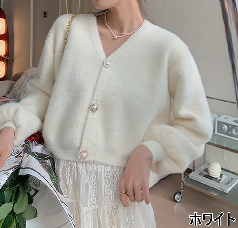 【送料無料】 カーディガン ニットカーディガン ショート丈 フロントボタン 白 ピンク ハートボタン ぽわん袖 長袖 韓国 レディース オルチャン Vネック 上品 無地 カーディガンジャケット ボリューム袖 春 秋 ショート 大人カジュアル フェミニン かわいい 可愛い きれいめ きちんと 大人可愛い オトナ可愛い こなれ感 キュート 通学 20代 30代 オフィスカジュアル 羽織 ホワイト デート 女子会 休日 普段使い ゆる 着回し 楽ちん 個性的 襟無し 韓国風 旅行 シンプル 定番