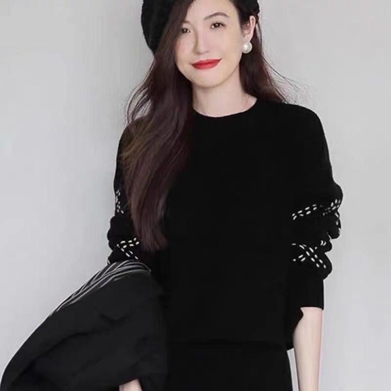 ニットセーターとスカートのセットアップでおしゃれなコーディネートが完成します。