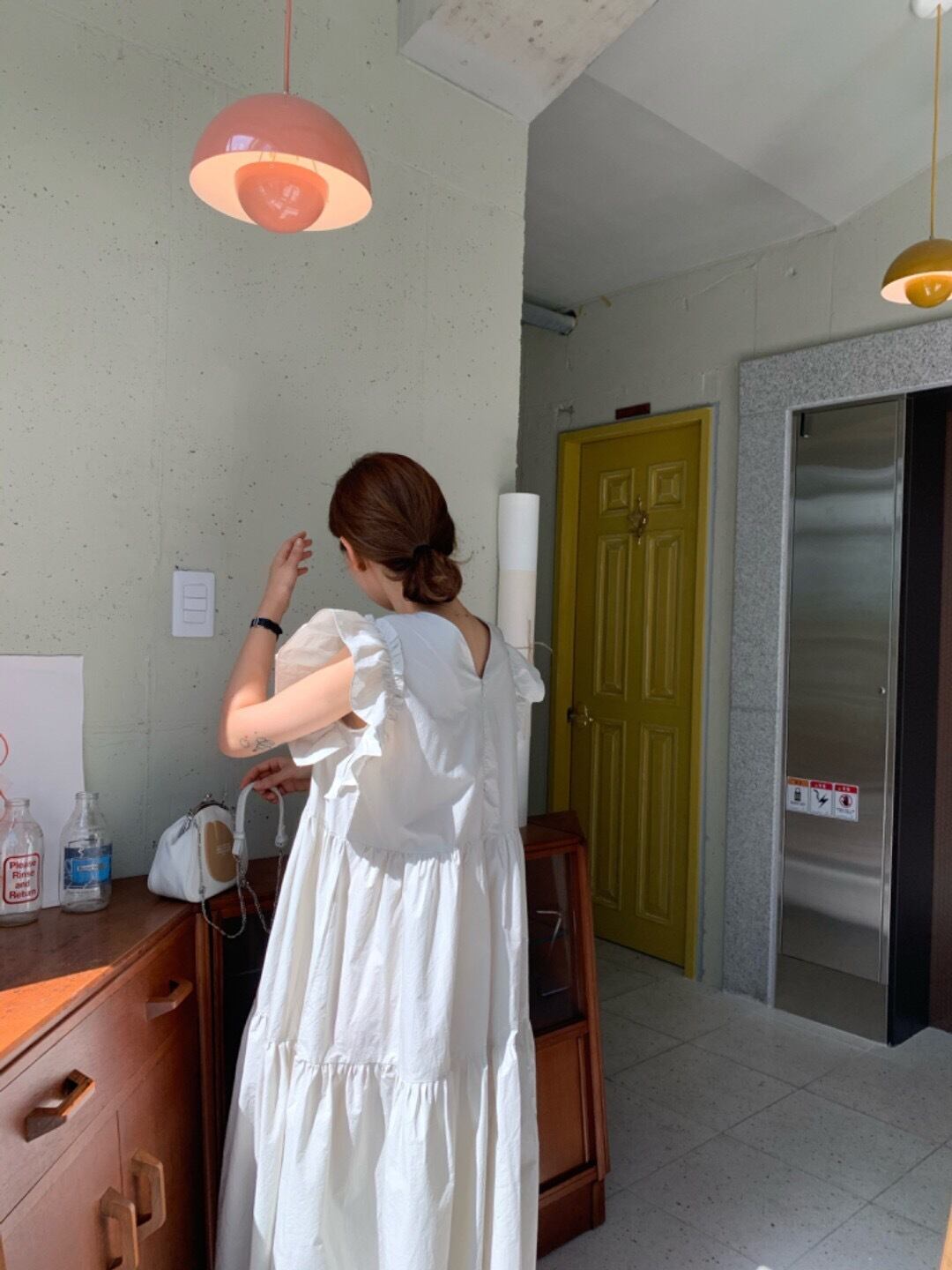 フリル袖がポイントのかわいらしいデザインのティアードロングワンピース。