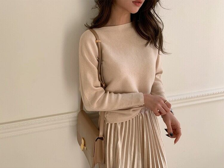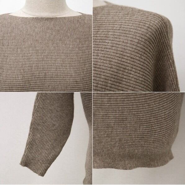 ドルマンスリーブデザインで、女性らしさを引き立てる一方、ラウンドネックとスリムなシルエットがシンプルでスマートな印象を与えます。