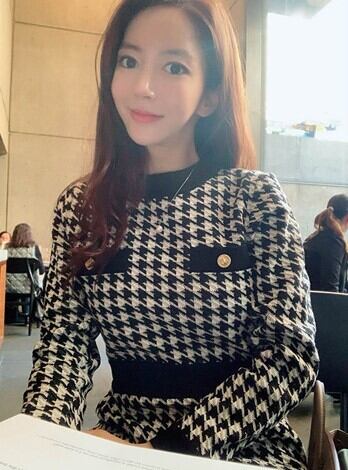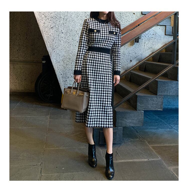 韓国風デザインがおしゃれな千鳥格子ニットワンピース。