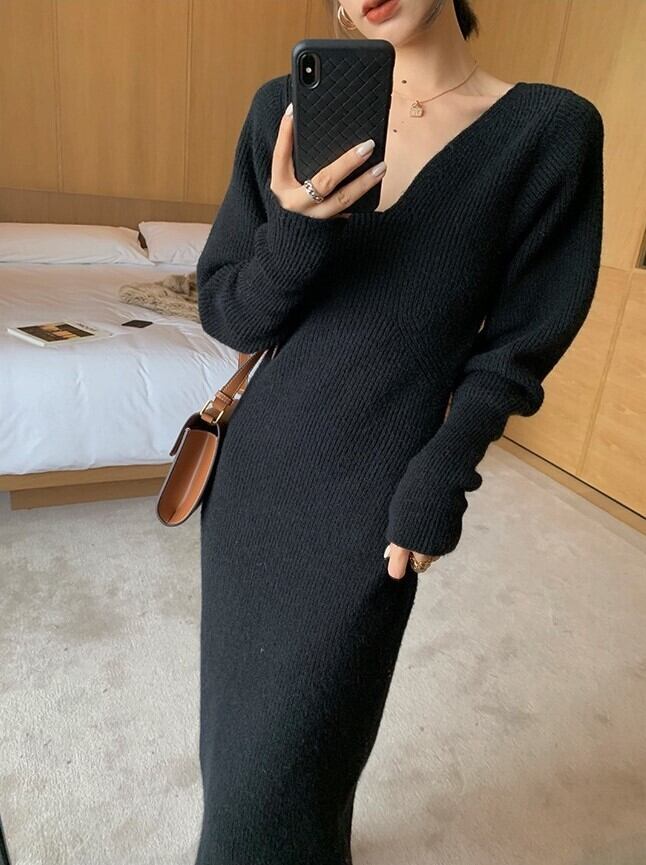 【送料無料】 ニットワンピース Yネック オルチャン レディース 韓国 ホワイト ブラック グレー ロング 長袖 スリム 細身 ストレート Iライン スマート ハイウエスト かわいい 大人可愛い きれいめ シンプル カジュアル 大人 上品 おしゃれ かっこいい 大人女子 こなれ感 キュート 個性的 クール モード系 セクシー エレガント モダン 抜け感 無地 女性用 ママ デート 女子会 お泊まり 休日 レストラン ショッピング 着回し 普段使い コーデ スタイル 楽ちん 暖かい モテ