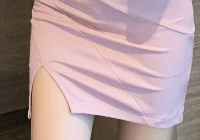 韓国ライクなフロントカットがおしゃれなタイトドレス。