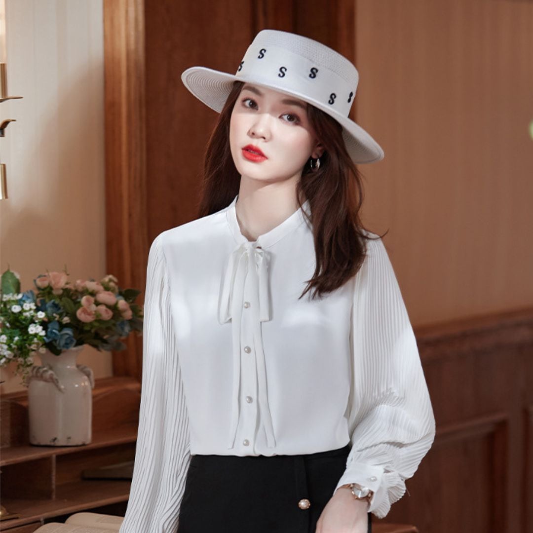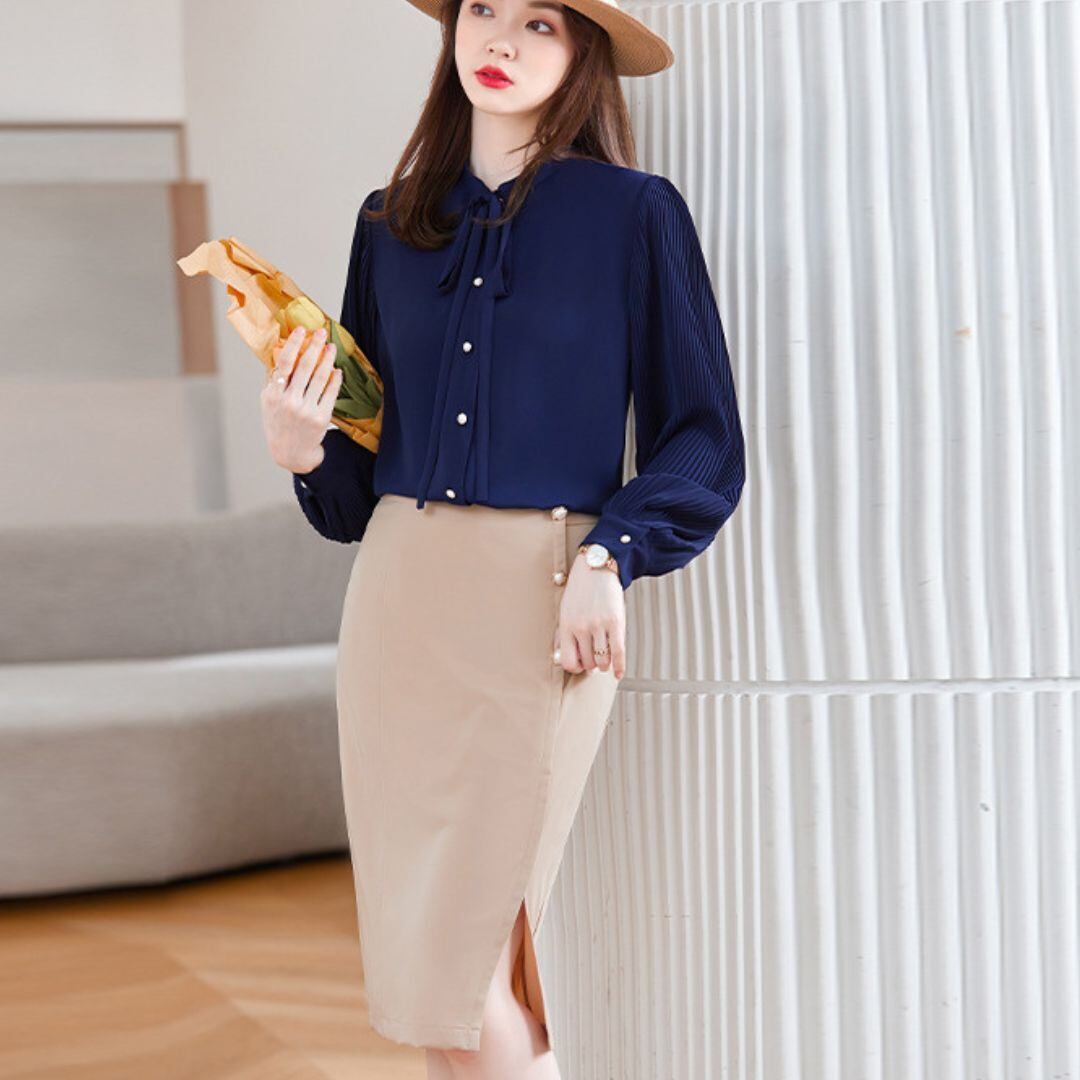 【送料無料】 シフォンブラウス 白 紺 プリーツスリーブ エレガント シフォンシャツ ブラウス シャツ 大きいサイズ 韓国 レディース オルチャン 長袖 かわいい 大人可愛い フォーマル きれいめ シンプル 大人 上品 おしゃれ お洒落 大人女子 こなれ感 ラブリー キュート 主役級 存在感 抜け感 無地 春 夏 秋 冬 20代 30代 40代 オフィス ビジネス OL 通勤 通学 デート 女子会 休日 イベント リゾート 旅行 着回し 普段使い トレンド インスタ映え 卒業式 入学式