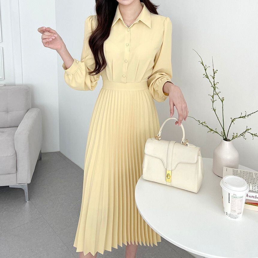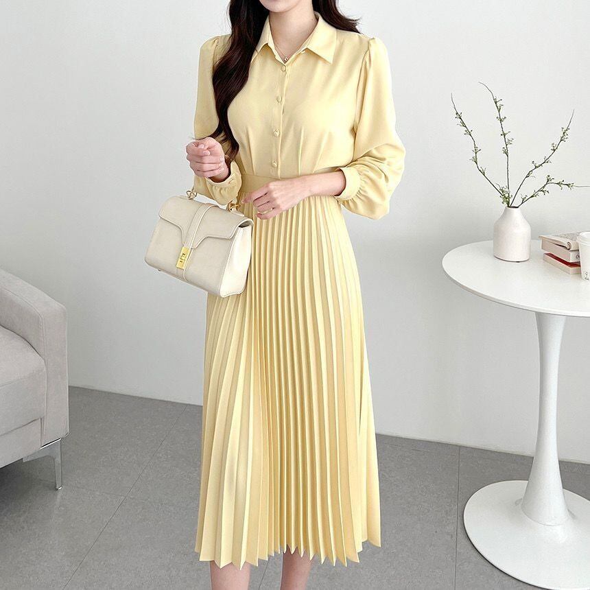 【送料無料】 プリーツワンピース ロングワンピース ウエストマーク ウエストベルト 長袖 韓国 レディース オルチャン 可愛い かわいい きちんと 大人可愛い きれいめ シンプル マキシ丈 マキシワンピ ボタン 袖あり カジュアル 大人 上品 おしゃれ お洒落 春カラー 大人女子 黄色 緑 パステルカラー こなれ感 シフォン 透け感 抜け感 春夏 春 秋 入学式 入園式 卒業式 卒園式 プリーツ オフィス ビジネス OL 通勤 通学 デート 女子会 お泊まり 着回し 普段使い