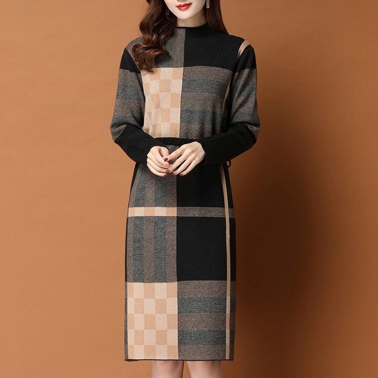 チェック柄の大人気ニットワンピース!季節感漂う秋カラーでコーディネートも楽しめるので、トレンド感のあるスタイルを目指す方におすすめです。一枚でこなれ感を演出できるので、着回し力も抜群。大人女子の魅力を引き立てる、エレガントで美しいワンピースです。