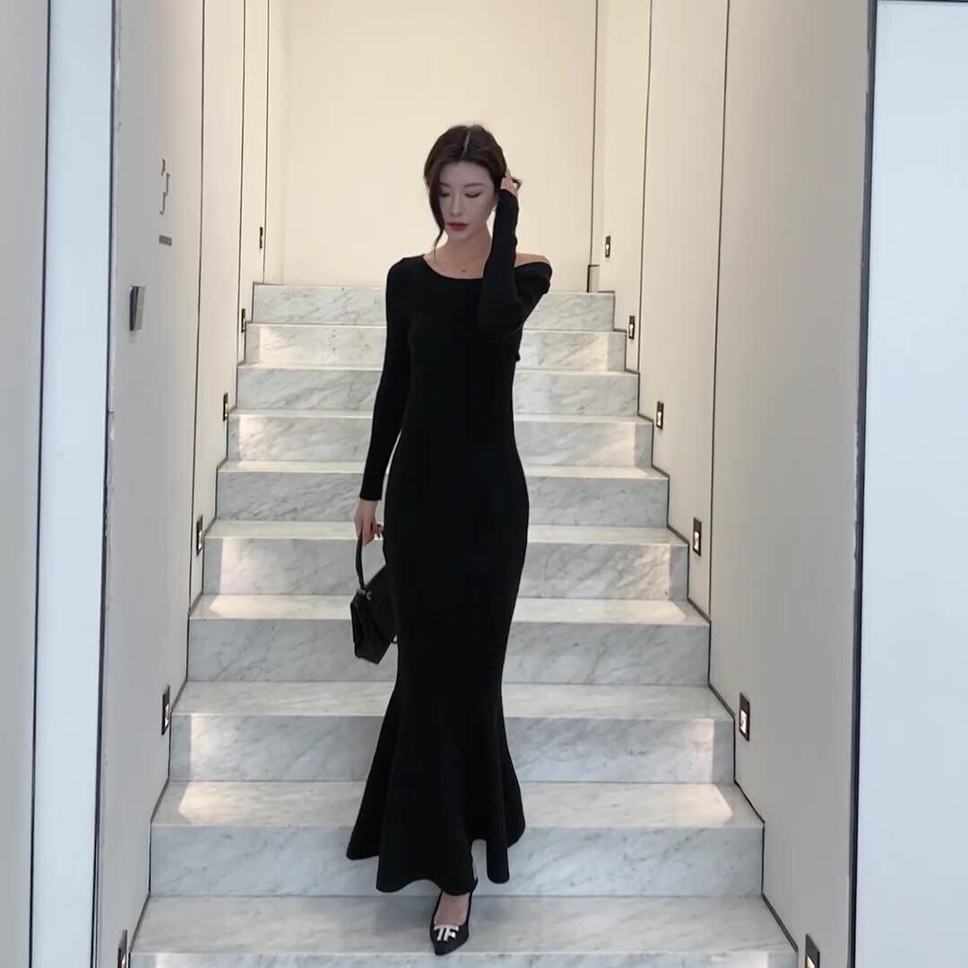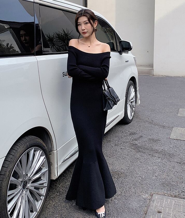 【送料無料】 マーメイド ニットワンピース ロングワンピース リブニット オフショル ボートネック 2WAY 韓国 レディース リブニットワンピース リブニット フレア裾 フレア マーメイド 長袖ワンピース オルチャン 大人可愛い シンプル カジュアル 大人 おしゃれ お洒落 大人カジュアル 大人女子 こなれ感 エレガント 抜け感 無地 秋 冬 20代 30代 40代 女性用 ママ デート イベント 着回し 普段使い 楽ちん モテ 体系カバー 美脚 S M L XL 2XL 大きいサイズ 黒 赤