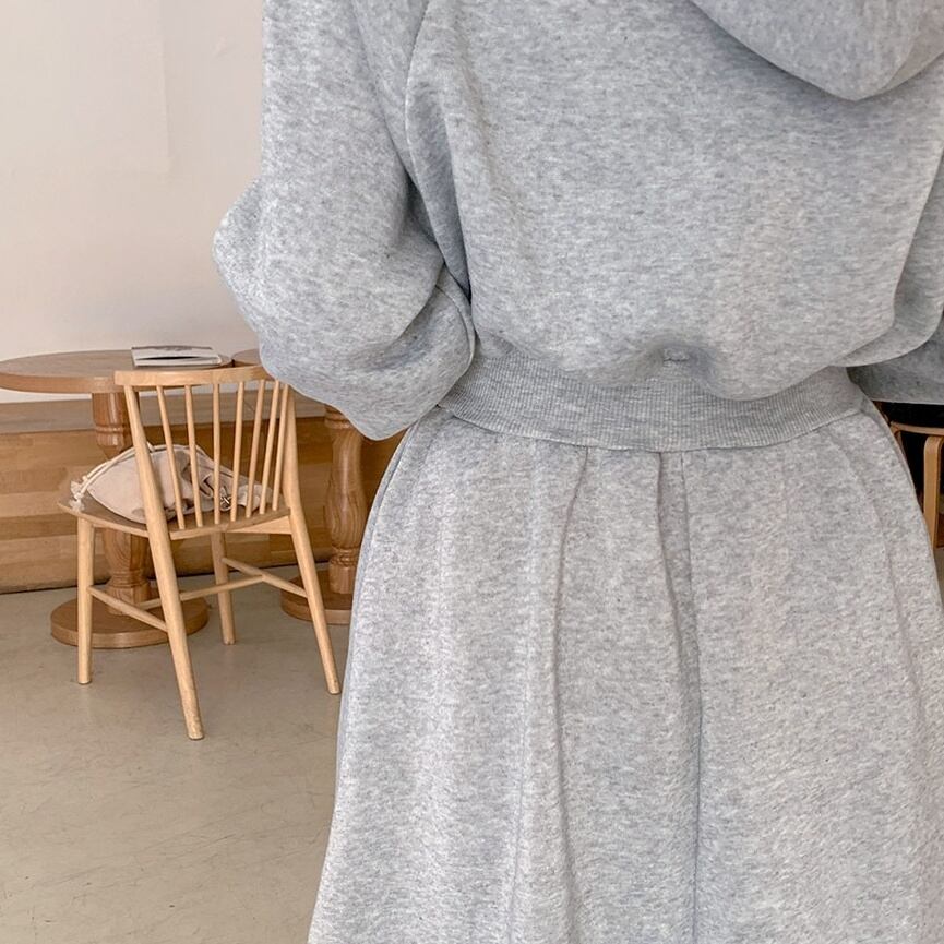 フード付きでカジュアルな雰囲気も演出できるAラインロングスカートの優れもの。さらに裏起毛加工で、寒い季節にもぴったりです。
