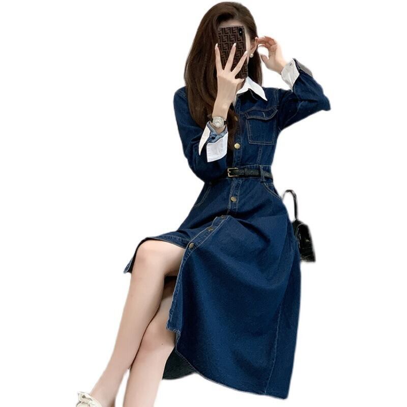 【送料無料】 ワンピース デニム デニムワンピース Aライン ミモレ丈 カジュアル 韓国 レディース オルチャン シャツワンピース 袖あり 長袖 襟付き かわいい 大人可愛い きれいめ デート 公園 春 シンプル 大人 上品 M L XL ボタン おしゃれ お洒落 大人可愛い 大人女子 こなれ感 ラフ キュート ルーズ 主役級 ミモレ丈ワンピース 秋 10代 20代 30代 40代 通学 女子会 お泊まり 休日 イベント 旅行 着回し 普段使い 重ね着 コーデ