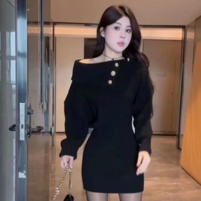 【送料無料】 リブニットワンピース ミニ丈ワンピース オフショル タイトワンピース 韓国 レディース オルチャン アシンメトリー 長袖 ワンピース ニットワンピース シンプル 無地 グレー 黒 ブラック スリム タイト 細身 セーター シンプル 大人 大人かわいい 大人可愛い おしゃれ お洒落 大人カジュアル セクシー 色っぽい 秋 冬 秋冬 10代 20代 30代 女性用 デート ギャル 着回し 普段使い 重ね着 韓国系 定番 スタイル モテ 美脚 脚長 スタイルアップ S M L