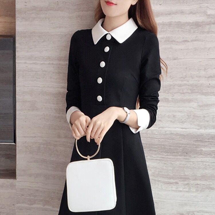 【送料無料】 ワンピース バイカラー ひざ丈ワンピース ホワイト ブラック 襟あり 韓国 レディース オルチャン 膝下 袖あり かわいい 大人可愛い 7分袖 七分袖 きれいめ ラウンドネック シンプル L XL 2XL 3XL 4XL 大人 上品 おしゃれ 配色カラー 大人可愛い 大人女子 こなれ感 キュート 主役級 存在感 抜け感 白 黒 春 秋 大きいサイズ 入学式 入園式 卒業式 卒園式 謝恩会 10代 20代 30代 オフィス ビジネス OL 通勤 デート 女子会 休日