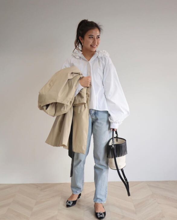 フードが可愛いくてふんわりとしたフリルが女性らしさを引き立てます。