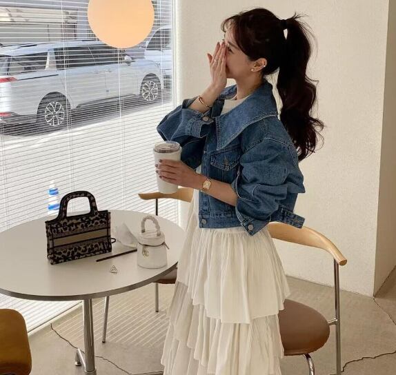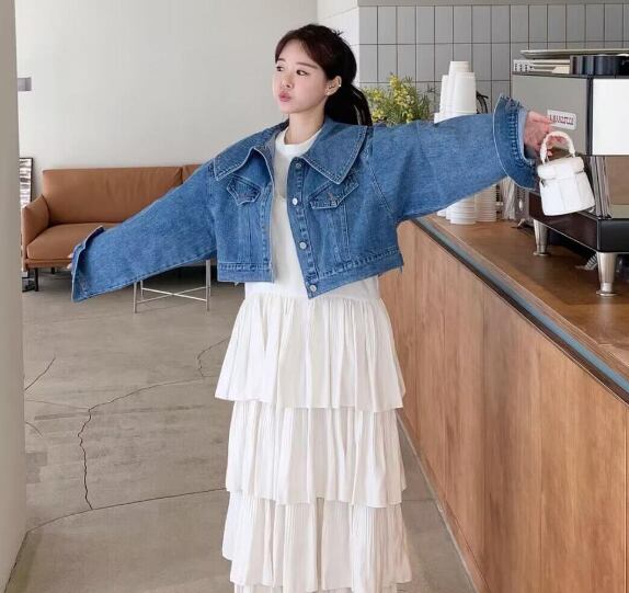【送料無料】 デニムドジャケット Gジャン ショート丈 ビッグカラー オーバーサイズ フロントボタン こなれ感 大人女子 定番 ストリート 韓国 レディース オルチャン 長袖 人形襟 個性的 ピンク ブルー ブラック 黒 オフショルダー 襟付き ワイド 楽ちん 大人カジュアル オトナ女子 シャーベットカラー 可愛い かわいい シンプル かっこいい レトロ 春 秋 通学 通勤 OL 20代 30代 オフィスカジュアル 女子会 デート デニム 無地 大きめ襟 ボリューム袖 デニムショート