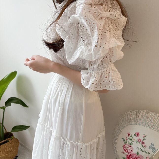 【送料無料】 セットアップ シャツ スカート 半袖 パフスリーブ ロングスカート ロング丈 透け感 レース ハイウエスト 2点セット ルーズ 韓国 レディース かわいい 可愛い キュート 大人可愛い 大人女子 シンプル きれいめ カジュアル 大人 気品 上品 おしゃれ お洒落 こなれ感 きちんと 大人女子 クール エレガント フェミニン ワンサイズ ホワイト 夏 オルチャン 10代 20代 女子会 デート 休日 リゾート 旅行 普段使い デイリー 着回し コーデ トレンド 脚長 美脚