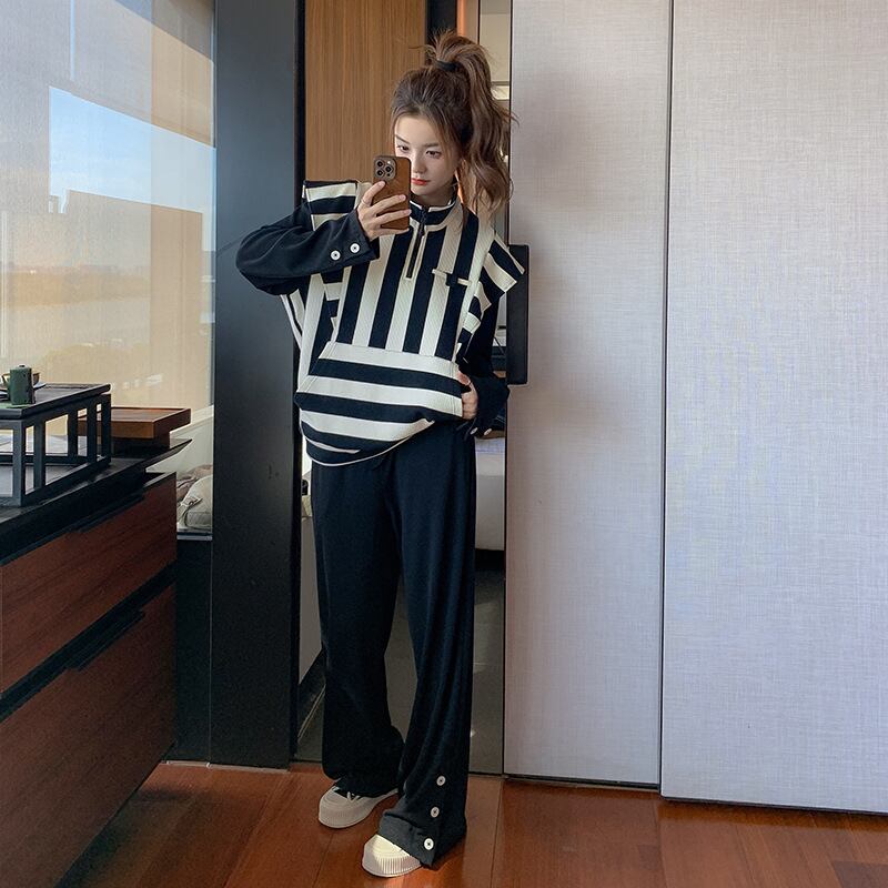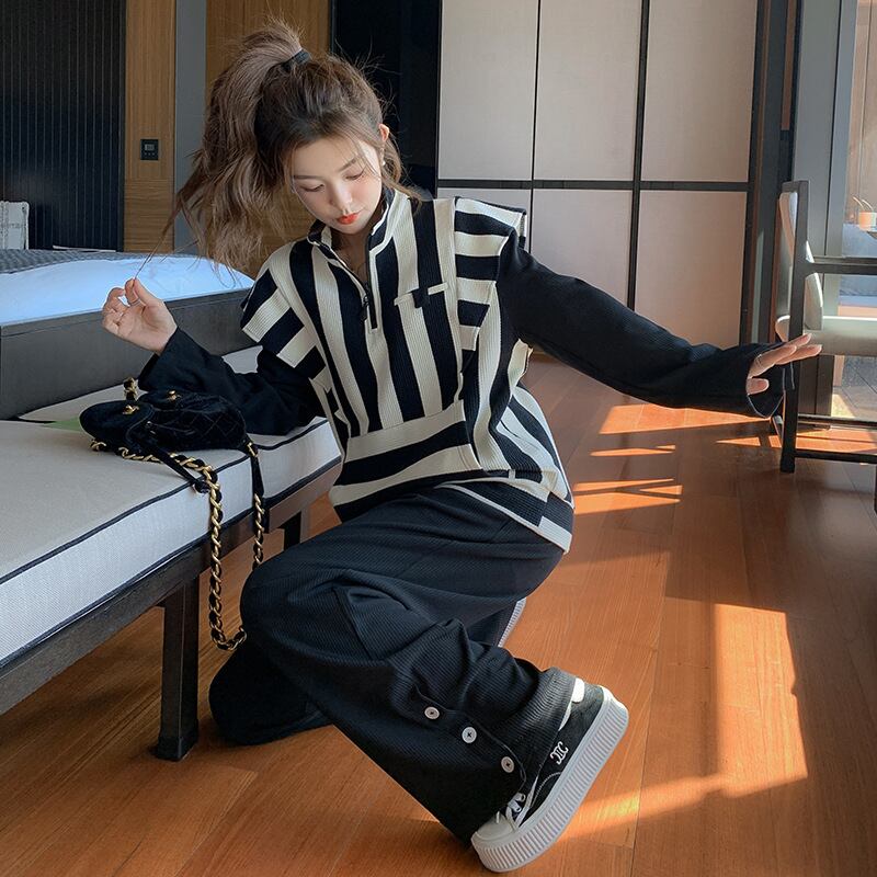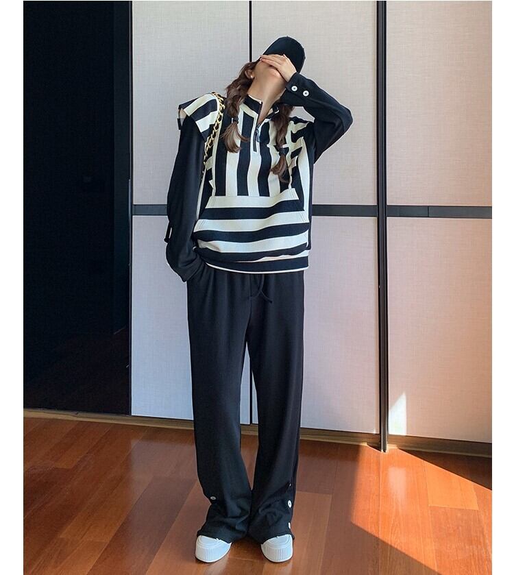 【送料無料】 セットアップ カットソー ワイドパンツ オルチャン ハーフジップアップ ツーピース セットアップ 韓国 レディース ボーダー ブラック ホワイト 長袖 ハイネック ルーズ スリム ワイド スマート ファスナー ポケット かわいい 大人可愛い シンプル カジュアル おしゃれ かっこいい 大人女子 こなれ感 ラフ マニッシュ ルーズ 女性用 ママ 女の子 デート 女子会 お泊まり 旅行 ショッピング 着回し 普段使い 重ね着 コーデ スタイル モテ 体系カバー 美脚 脚長